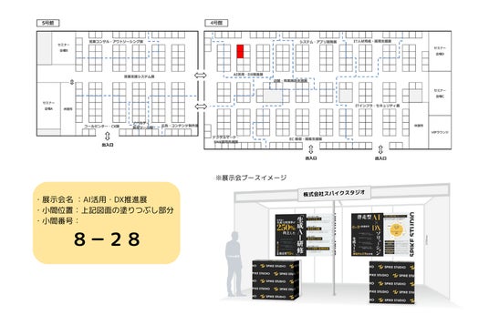 今回、より多くの企業様に「スパイクスタジオ」の強みを知っていただく機会を設けるべく、弊社からは、「従業員の生成AI利用率が250%UPした生成AI研修」や「6ヶ月で組織変革をもたらす伴走型 AI×DXソリューション」など2つの軸をメインに出展を行います。