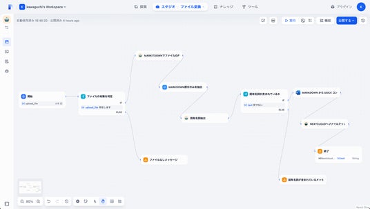 ファイルの中に機密情報が含まれているかを判別したうえで、Word形式でレポートを出力させるワークフローの例