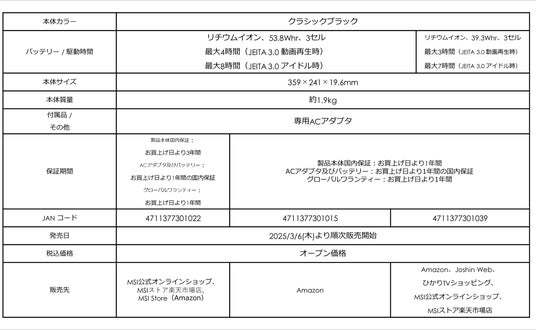 この度、エムエスアイコンピュータージャパン株式会社は、「“軽さ”ではなく“速さ”」を追求したビジネスノートPC「Modern 14 H」、「Modern 15 H」シリーズに最新世代のCPU「インテル(R) Core(TM) プロセッサー(シリーズ 2)」を採用した「Modern 14 H D2RM」と「Modern 15 H C2RM」シリーズを2025年3月6日(木)より順次発売いたします。