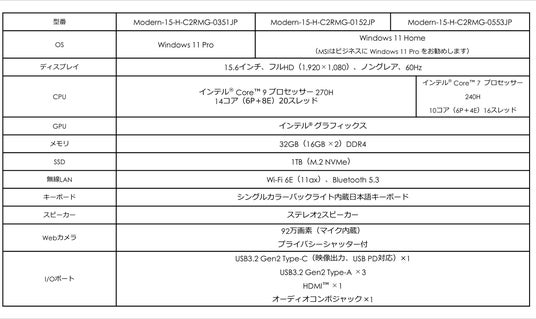 「“軽さ”ではなく“速さ”」を追求したビジネスノートPCの最新世代モデル誕生 14インチ版「Modern 14 H D2RM」、15.6インチ版「Modern 15 H C2RM」発売