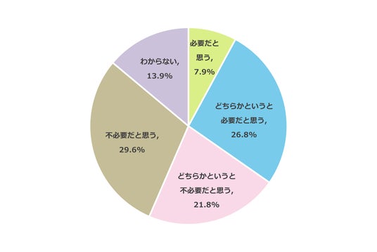 次に、PTAの必要性について尋ねたところ、34.7%が「必要だと思う」(必要だと思う:7.9%、どちらかというと必要だと思う:26.8%)と回答しました。一方、51.4%が「不必要だと思う」(不必要だと思う:29.6%、どちらかというと不必要だと思う:21.8%)と回答し、PTAに加入したことがある保護者の半数以上が、PTAを不要と考えていることがわかりました。