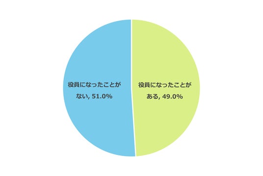 PTAに加入したことがある小中学生の保護者980名を対象に、PTA役員の経験について調査しました。その結果、49.0%が「役員になったことがある」、51.0%が「役員になったことがない」となり、約半数の保護者がPTA役員を務めたことがあることがわかりました。
