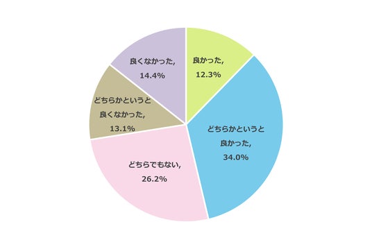 PTA役員の経験がある小中学生の保護者480名を対象に、PTA役員を務めて良かったと感じたかを調査しました。その結果、46.3%が「良かった」(良かった:12.3%、どちらかというと良かった:34.0%)と回答しました。約半数の保護者がPTA役員の経験を前向きに捉えていることがわかりました。