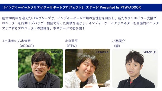 ■『インディーゲームクリエイターサポートプロジェクト』 ステージ Presented by PTW/ADOORの開催
