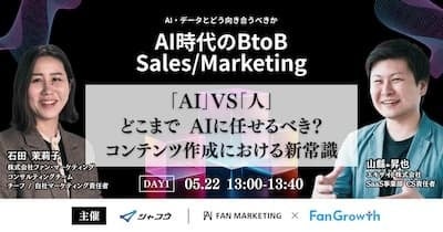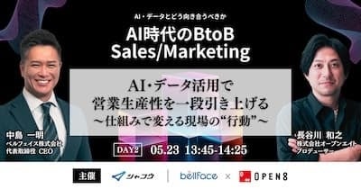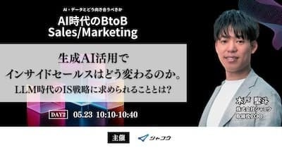 株式会社 シャコウ(本社:所在地:東京都渋谷区、代表取締役:太田翔葵)は、BtoB企業32社が登壇する「AI・データとどう向き合うか?」というコンセプトで、『AI時代のBtoB Sales/Marketing 現状から一歩先に進み、業務生産性を飛躍的に高める2日間』の開催が決定したことをお知らせします。
