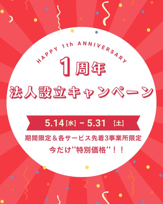 ~法人設立1周年記念キャンペーンを期間限定で実施~