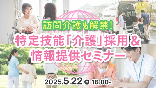 タイトル:訪問介護も解禁!特定技能「介護」採用&情報提供セミナー開催日時:2025年5月22日(木) 16:00 ~ 17:00 ※10分前から入室可能