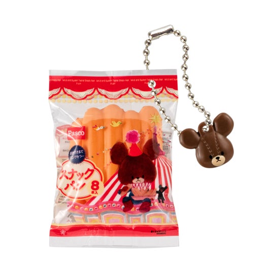 敷島製パンPascoのロングセラー商品であるくまのがっこうパッケージのスナックパンがスクイーズチャームに。触った感触が本物そっくり!
