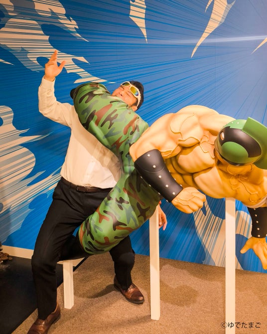 本展示物は、実際にキン肉マンソルジャーの技にかかることができ、さらに写真撮影も可能です。