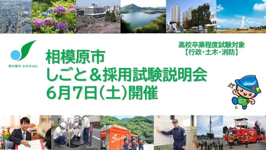 相模原市では、このたび7月から募集を開始する行政・土木・消防職の職員採用試験(高校卒業程度)に先駆け、「しごと&採用試験説明会」を6月7日(土)に開催します。