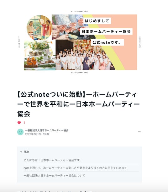 日本ホームパーティー協会は、公式noteを通じて、ホームパーティーに関する様々な情報を発信することで、ホームパーティー文化のさらなる発展に貢献してまいります。