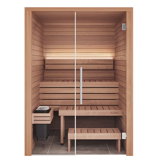 トミーさんのご自宅に導入いただいた『Auroom Cala Glass』は、2~3人で入れるサイズの屋内用キャビンサウナです。