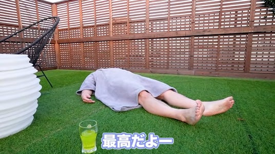 ルーティンの締めは外気浴です。開放感ある屋上に寝そべったトミーさんから、「最高」と声があがります。