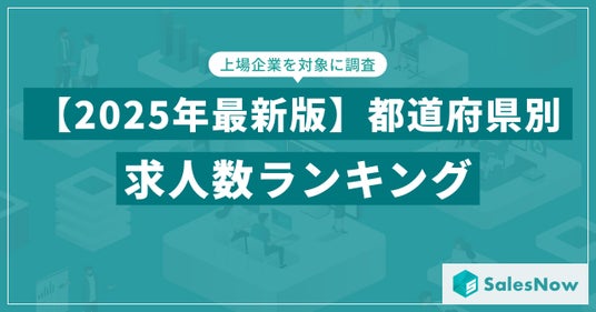 株式会社SalesNow(本社:東京都渋谷区、代表取締役:村岡功規、以下「当社」)は、国内540万社の企業情報を完全網羅した日本最大級のデータベース「SalesNow DB」より、2024年4月1日~2025年4月1日の期間において、アルバイト媒体を除いた正社員・契約社員などの求人データをもとに、「本社所在地別(都道府県別)」の求人数ランキングを集計・分析し、公開いたしました。