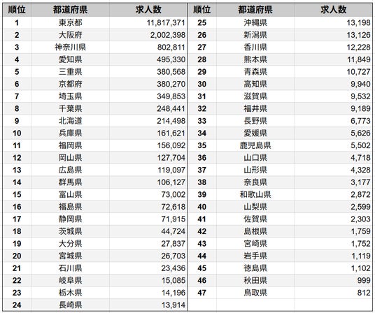 【2025年最新版】都道府県別 求人数ランキングを発表/SalesNow DBレポート