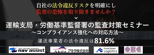 運輸支局と労働基準監督署による監査の実態と監査に向けたコンプライアンス強化の方法を初歩から学び自社の法令違反リスクに対応できるセミナーです!