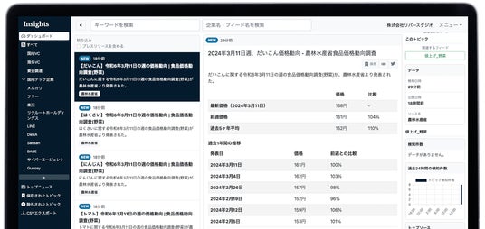コメ・食品価格フィードを強化・提供開始 = 食品や原料など100種類以上の価格動向をリアルタイムで月額5万円から入手可能