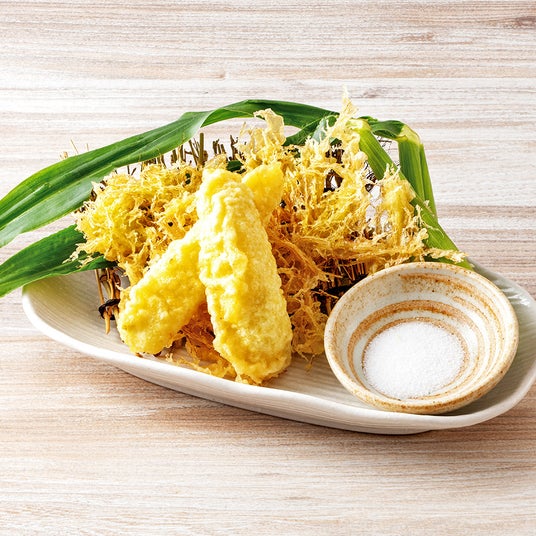 ヤングコーンの天ぷら 499円(税込548円)ひげまで美味しい、ほのかな甘みとシャキッと食感!