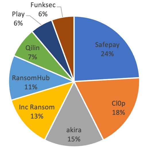・ドイツでは、Safepayが報告された被害件数の24%を占めており、これは攻撃者が特定地域を意図的に標的にしている可能性を示しています。
