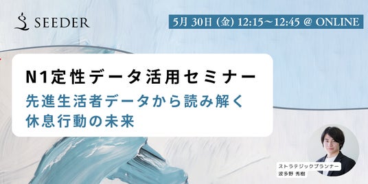 ~ニクセン、ナイトソロ活…次のヒットを生む「休息行動」の兆し~ 2025年5月30日(木)12:15~12:45に、SEEDERが無料オンラインセミナーを開催します!
