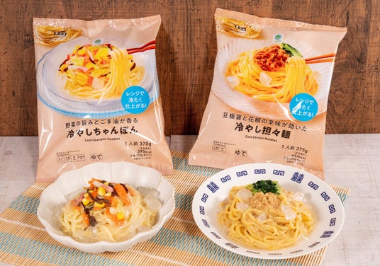 また、同日より冷凍食品から、レンジで温めて仕上げる冷し麺2種類を発売いたします。