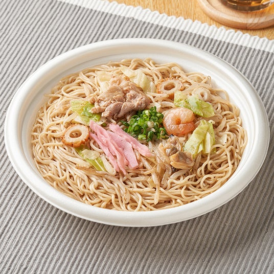 【内容】福岡天神の行列店「Shin-Shin」店主監修の焼きラーメンです。「Shin-Shin」でも人気の博多屋台の名物料理焼きラーメンを発売いたします。とんこつベースの濃厚スープにウスターソースを合わせ、「Shin-Shin」ならではのラードのコクや魚介の風味を感じられる味わいに仕立てました。麺はすすりやすい細麺を使用しています。
