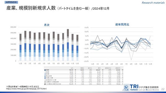 株式会社ツナググループ・ホールディングス(本社:東京都中央区、代表取締役社長:米田 光宏)を母体とする、多様な働き方の調査研究機関「ツナグ働き方研究所(拠点:東京都中央区、所長:大野 博司)」は、官公庁などが発表する労働市場関連のデータをキュレーションしつつ、分かりやすくまとめた「労働市場データレポート」を毎月発表しています。今回は1月下旬に発表された最新データをもとに2024年12月度のレポートについて、とりまとめましたのでご報告いたします。