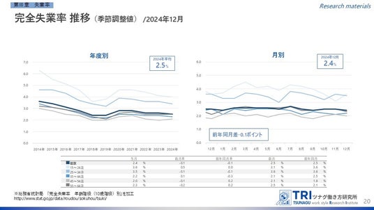 2. 完全失業率は2.4%。前月差-0.1ポイント、前年同月差-0.1ポイント。