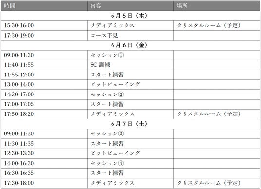 ※ 走行時間:第1回公式テストの降雪キャンセル分を追加し各セッション2h→2.5hへ