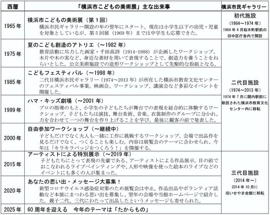 子どものための展覧会「横浜市こどもの美術展」は、今年で開催60周年を迎えます。横浜市民ギャラリーが開館した翌年の1965年から始まり、市内の子どもの応募作品を展示することで、子どもたちの自由な発想と豊かな表現を育み、健やかな成長を応援してきました。これまでに展示された子どもたちの作品は18万点以上にのぼります。