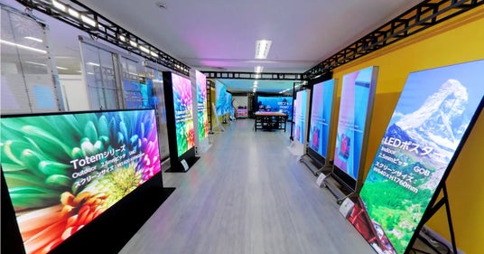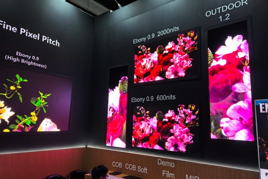 また、従来のLEDビジョンと比べて1/50サイズのマイクロLEDチップを採用したモデルや、フレキシブル加工が可能なCOBタイプのソフトモジュールも紹介。来場者は、実際に製品に触れ、その高精細な映像を間近で体験することができました。