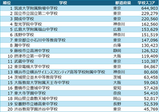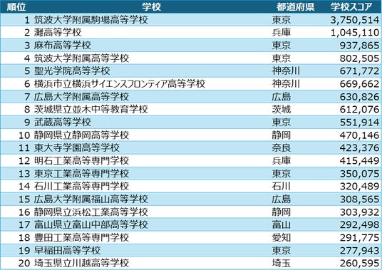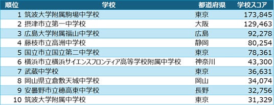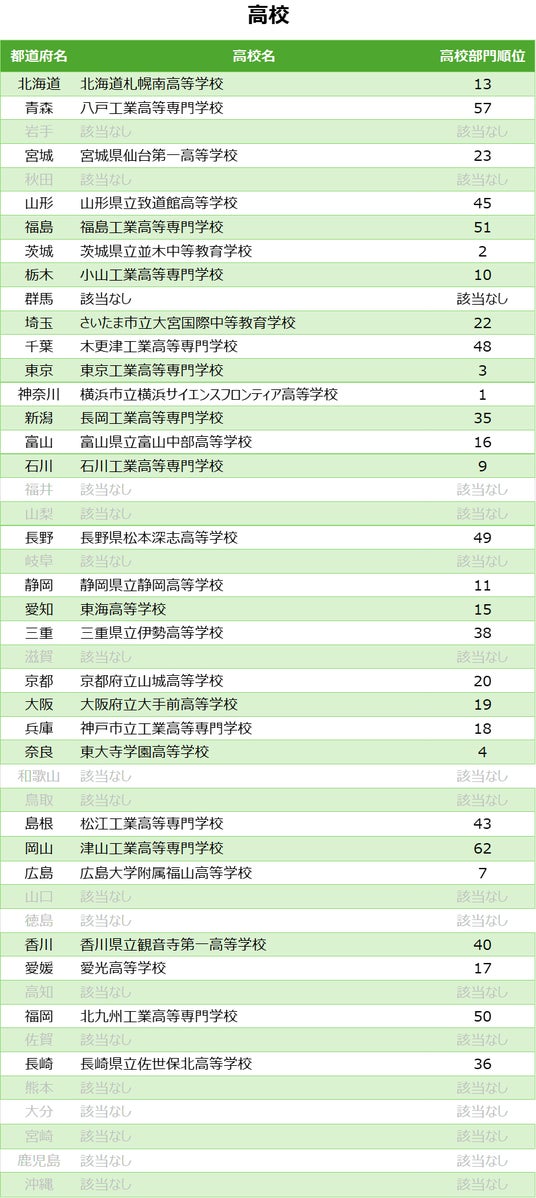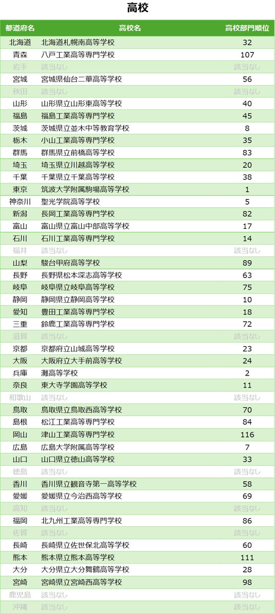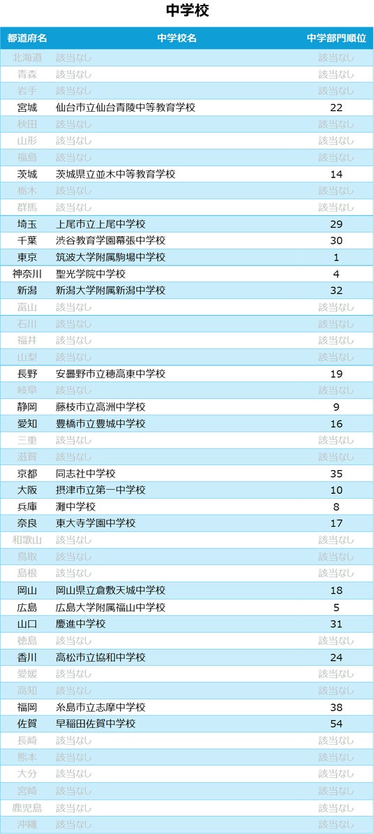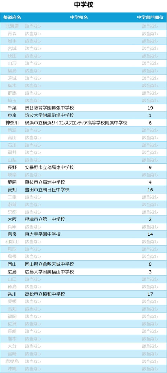 <ヒューリスティック部門 都道府県別1位の中学校・高校>