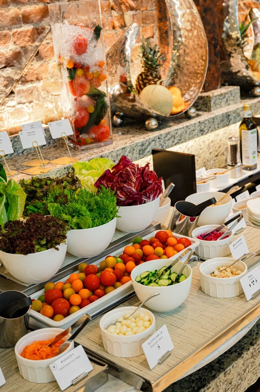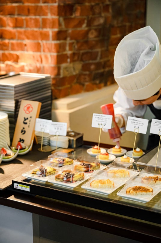 かつて屋根裏部屋だったアトリウム。再開業時の全面改装により誕生しました。現在は、最大約9メートルの天井高と、一面を覆う天窓から差し込む柔らかな陽光が、穏やかで心落ち着く空間を演出しています。100種類以上のアイテムが並ぶブッフェでは、季節ごとの旬の食材をふんだんに使用し、全国各地から取り寄せたシェフこだわりの食材とともに、洋食・和食・中華など、多彩なバリエーションをご堪能いただけます。中でも、江戸時代から受け継がれてきた伝統的な「江戸料理」は、和食の魅力をあらためて感じていただけます。また、卵料理、ベーカリー、和食、スイーツの各セクションにはライブキッチンを設けており、作りたての美味しさをお届けしています。