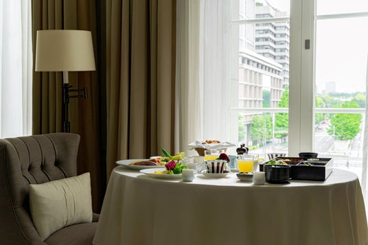 気持ちよく目覚めた朝、客室でゆったりと過ごしたい方には、ルームサービスがおすすめです。軽めに済ませたいときには、フルーツたっぷりのコンチネンタルブレックファストを。しっかり食べたい方には、お好みの調理法で仕上げる卵料理を含むアメリカンブレックファストや、黒毛和牛をメインに据えたパワーブレックファストもご用意しております。和食派の方には、どれから手をつけるか迷うほど華やかな松花堂弁当をご提供。一日の始まりにふさわしい、心も体も満たされる朝食です。
