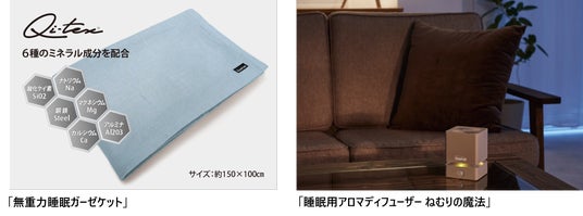 リフレッシュの効果が期待できる「無重力睡眠(R) ガーゼケット」や睡眠に特化したアロマディフューザーがもらえる