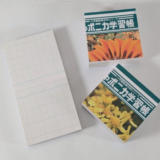 ロングセラーの学習ノート「ジャポニカ学習帳」の製造時に発生する端紙を集めて作ったブロックメモ。中の罫線はランダムになっており、たっぷり使える400枚入り。数量限定。