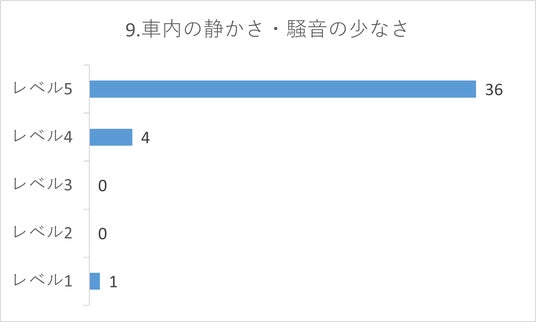 9.運転性に対する評価EVの運転における評価:車内の静かさ・騒音の少なさ(5段階評価:1=非常に悪い / 5=非常に良い)