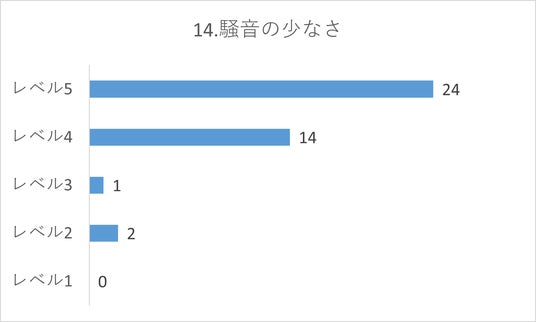 14.勤務満足度の変化:騒音の少なさ(5段階評価:1=非常に悪い / 5=非常に良い)