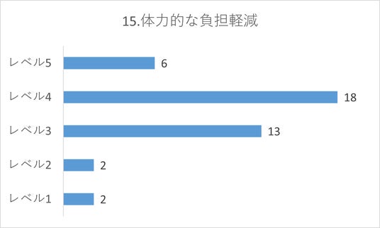 15.勤務満足度の変化:体力的な負担軽減(5段階評価:1=非常に悪い / 5=非常に良い)
