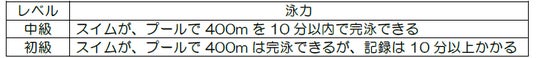 (3)スイム参加者は400mを連続で完泳できる泳力があること