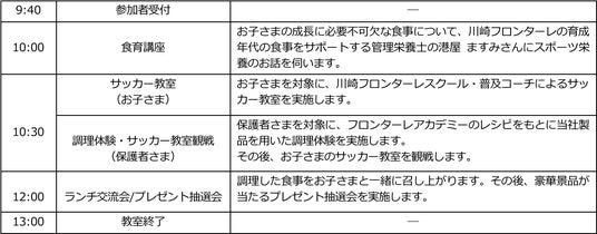 本イベントでは、親子30組60名様を「Anker フロンタウン 生田」に招待し、川崎フロンターレスクール・普及コーチによるサッカー教室をお楽しみいただきます。また、食育活動の一環としてお子さまの成長に必要不可欠な食事について、川崎フロンターレの育成年代の食事をサポートする管理栄養士の港屋 ますみさんによる食育講座を行います。
