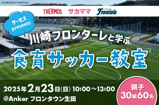 魔法びんのグローバル企業として、人と社会に快適で環境にもやさしいライフスタイルを提案するサーモス株式会社(本社:東京都港区 社長:片岡 有二)は、2025年2月23日(日)に川崎フロンターレが運営する首都圏最大規模のスポーツタウン「Anker フロンタウン生田」にて、株式会社ソル・メディア(本社:東京都港区 代表取締役:利重 孝夫)が主催するサカママイベント『サーモス presents 川崎フロンターレと学ぶ 食育サッカー教室』に協賛します。