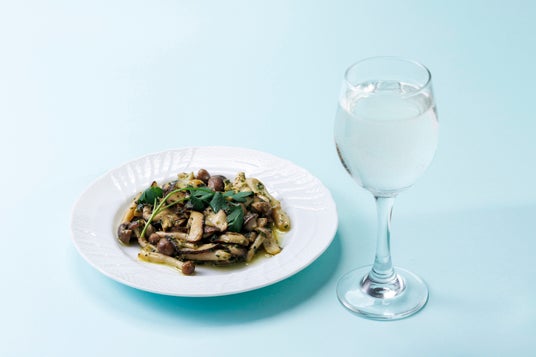 アルパ3F カフェ マイアミガーデン 酒ハイ(1杯) 720円、きのこのソテージェノバ風1,000円、使用した日本酒:橅のしずく