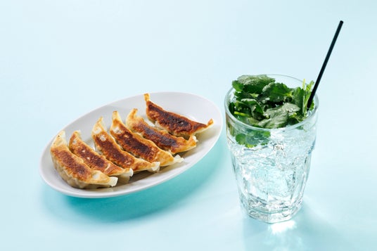 アルパ3F 萬力屋 酒ハイ(1杯)715円、スタンダード餃子528円、使用した日本酒:月桂冠 恒の月