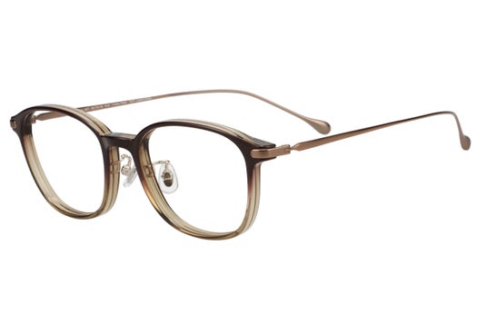 軽量プラスチックと柔軟性のあるβ-チタンを組み合わせたワンランク上のコンビネーションフレームです。定番のブラックとブラウンの他、これからの季節にぴったりのクリアカラーも展開。ほどよいサイズ感とミニマムなデザインは服装やシーンを選ばず、日常使いにおすすめです。
