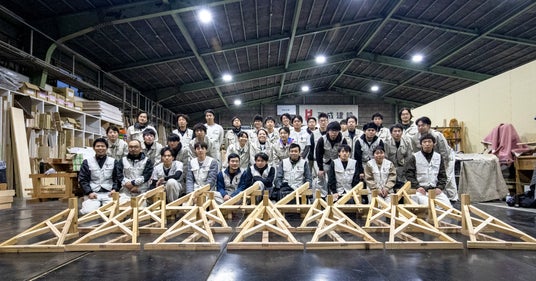 今回の『建築大工技能検定』模擬テストには、「棟梁」を目指す35人の若手大工が参加。実際の試験を想定した環境で、黙々と課題に取り組み、制限時間内に完成させるべく、日頃の鍛錬の成果を発揮しました。完成した課題作品はすでに「建築大工技能士 一級」を取得している大工により採点。テスト終了後には、講評が行われました。