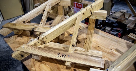 シンメトリーの二級課題は、のこぎりで正確に木材を切断できれば、接合部がぴったりと収まります。対して一級課題は、アシンメトリーで「ひよどり栓」という難所があります。部材の加工、刻み…すべてがうまくいったとき、はじめてぴったりと美しく、隙間なく収まります。より高い技術力が求められる課題です。