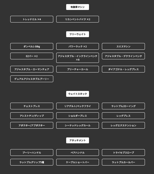 30台以上のマシン完備|初心者から上級者まで対応