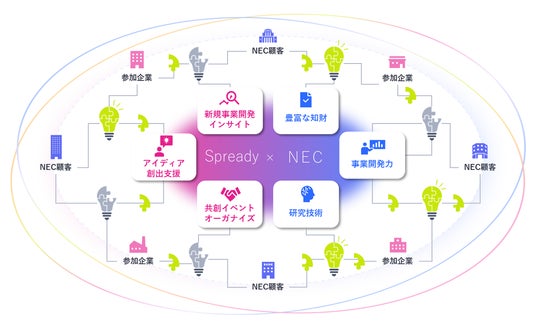 NECは、デジタル技術を活用した社会課題の解決を目指しており、その一環としてオープンイノベーションを推進しています。Spreadyは、企業の新規事業開発領域において、実証実験支援や事業開発を加速化するプラットフォームを運営しています。今回のNECによるSpreadyへの出資により、NECが保有するAI技術や新規事業開発力と、Spreadyの持つネットワークやノウハウを活用し、より迅速かつ効果的な新規事業の創出を目指します。また、様々な企業と連携するオープンイノベーションを推進し、日本の新規事業開発の活性化を目指します。