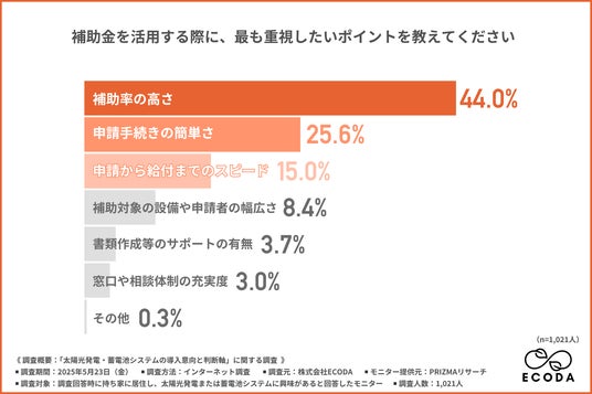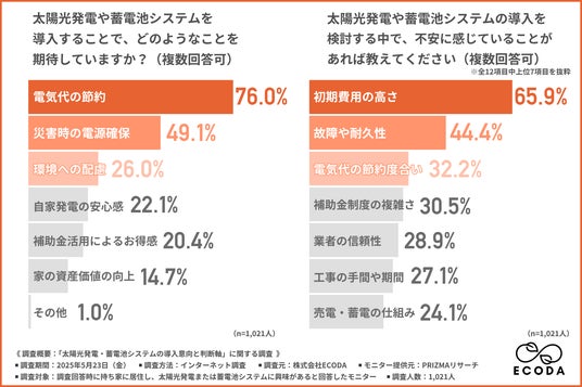 株式会社ECODA(本社:東京都渋谷区、https://ecoda-corp.com/ )は、持ち家に居住し、太陽光発電または蓄電池システムに興味がある方を対象に、「太陽光発電・蓄電池システムの導入意向と判断軸」に関する調査を行いました。